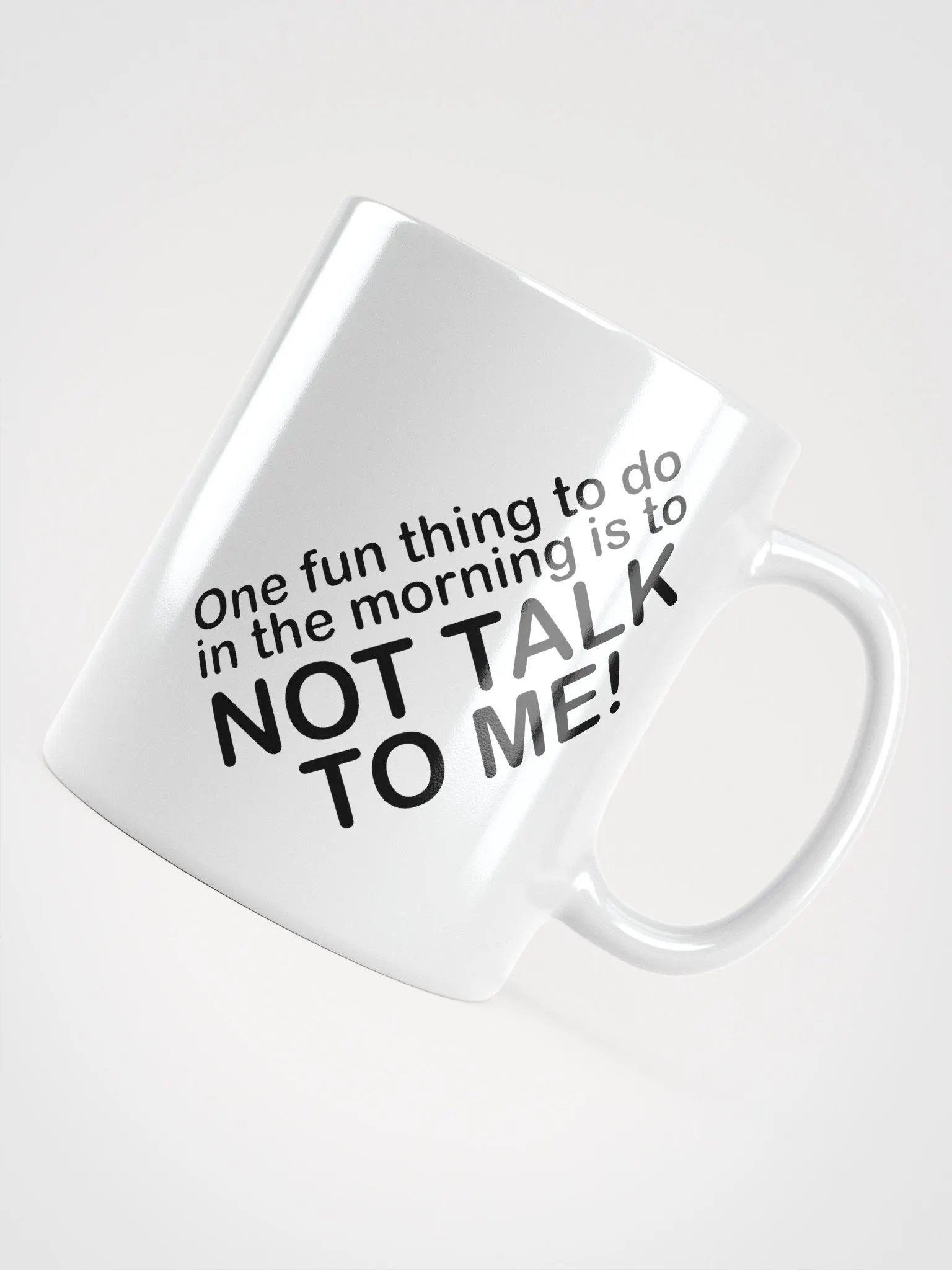 "One fun thing to do in the morning is to NOT TALK TO ME!" mug